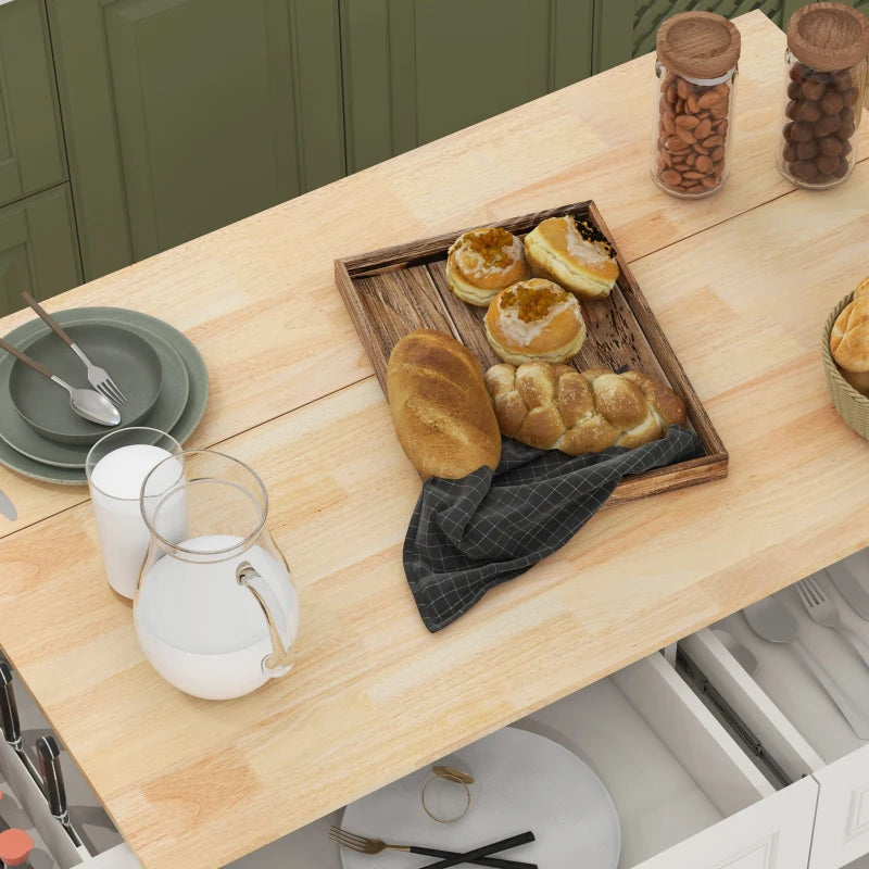 Expandable Workspace: The rubberwood drop leaf countertop on this kitchen cart easily folds for space-saving or expands for additional dining spot or counter space with your bar stools, offering a water and scratch-resistant surface for your cooking needs.