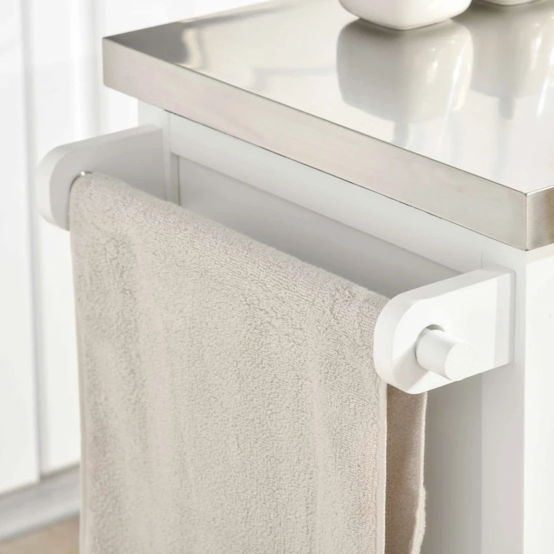 Sturdy Built: Made from MDF and particleboard, pinewood spice rack and towel holder, stainless steel countertop, the bar cart is solid and reliable for everyday use in your kitchen.