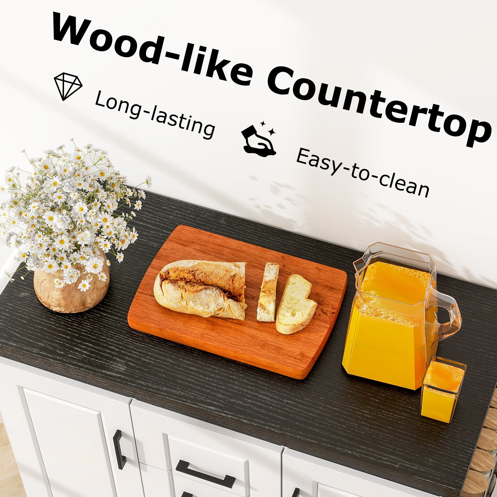 ● Practical Countertop: The large wood-like countertop of this island table not only adds a charming rustic flair to your kitchen space but is also engineered for durability and easy maintenance.